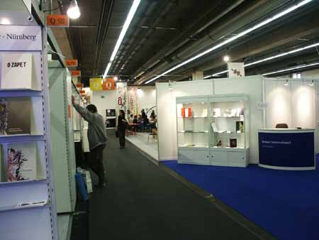links im Bild angeschnitten ICHverlag, rechts Stiftung Buchkunst, Halle 4.1