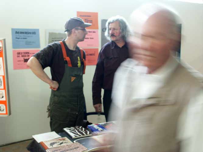 Guido Häfner (l.) am Stand von Ingo Cesaro (r.) - Ingo Cesaro präsentierte eine Reihe aktueller Veröffentlichungen seiner Gedichte und Haikus.