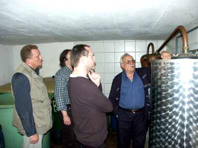 Josef Häfner erklärt der Delegation den Kühler (r.)